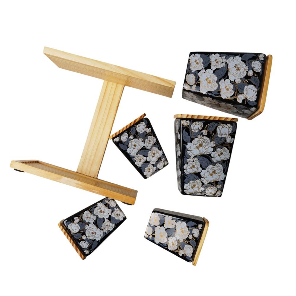 Material: Premium Ceramic (Jars), Wooden/Metal (Stand)