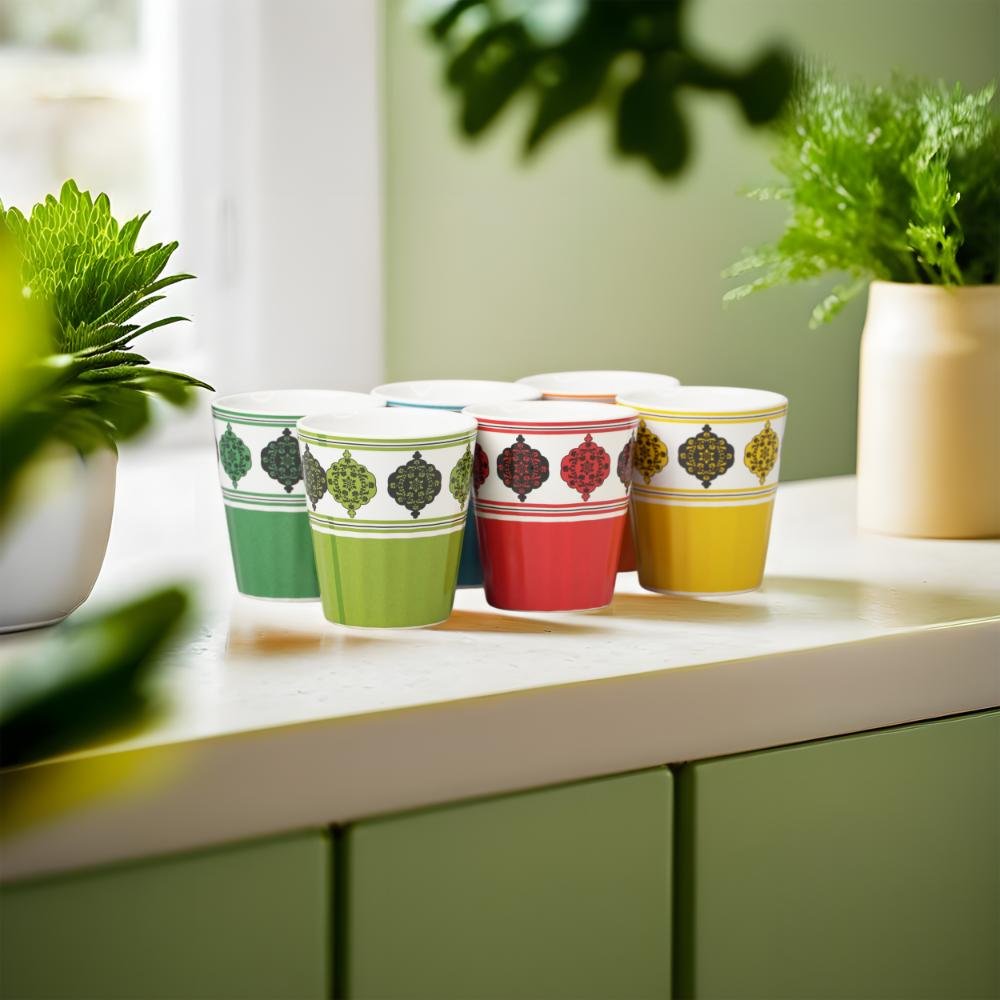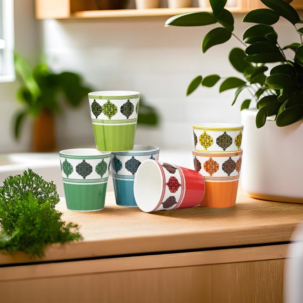 • Set Includes: 6 ceramic tea glasses in assorted colors